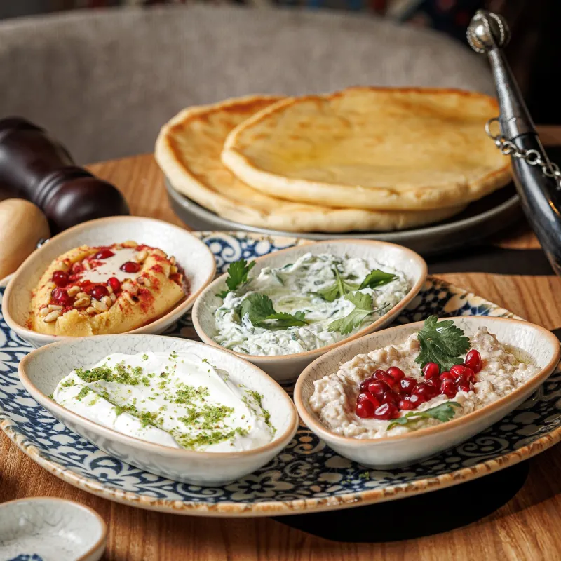 Мутабаль / дзадзики / лабне / хумус ливанский / йогуртовая лепешка