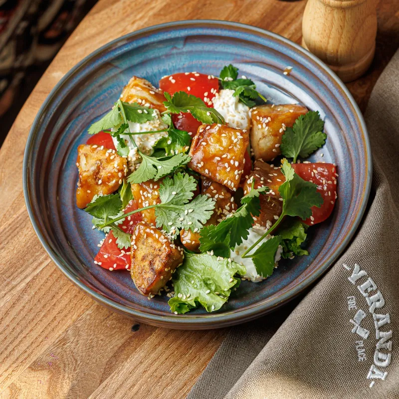 Баклажан / каймак / чеснок / кунжутная паста / оливковое масло